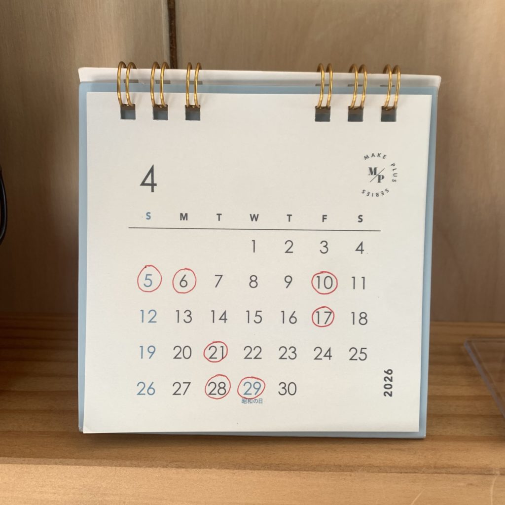 今までと変わらずカレンダーの⭕️印がお休みとなります。
